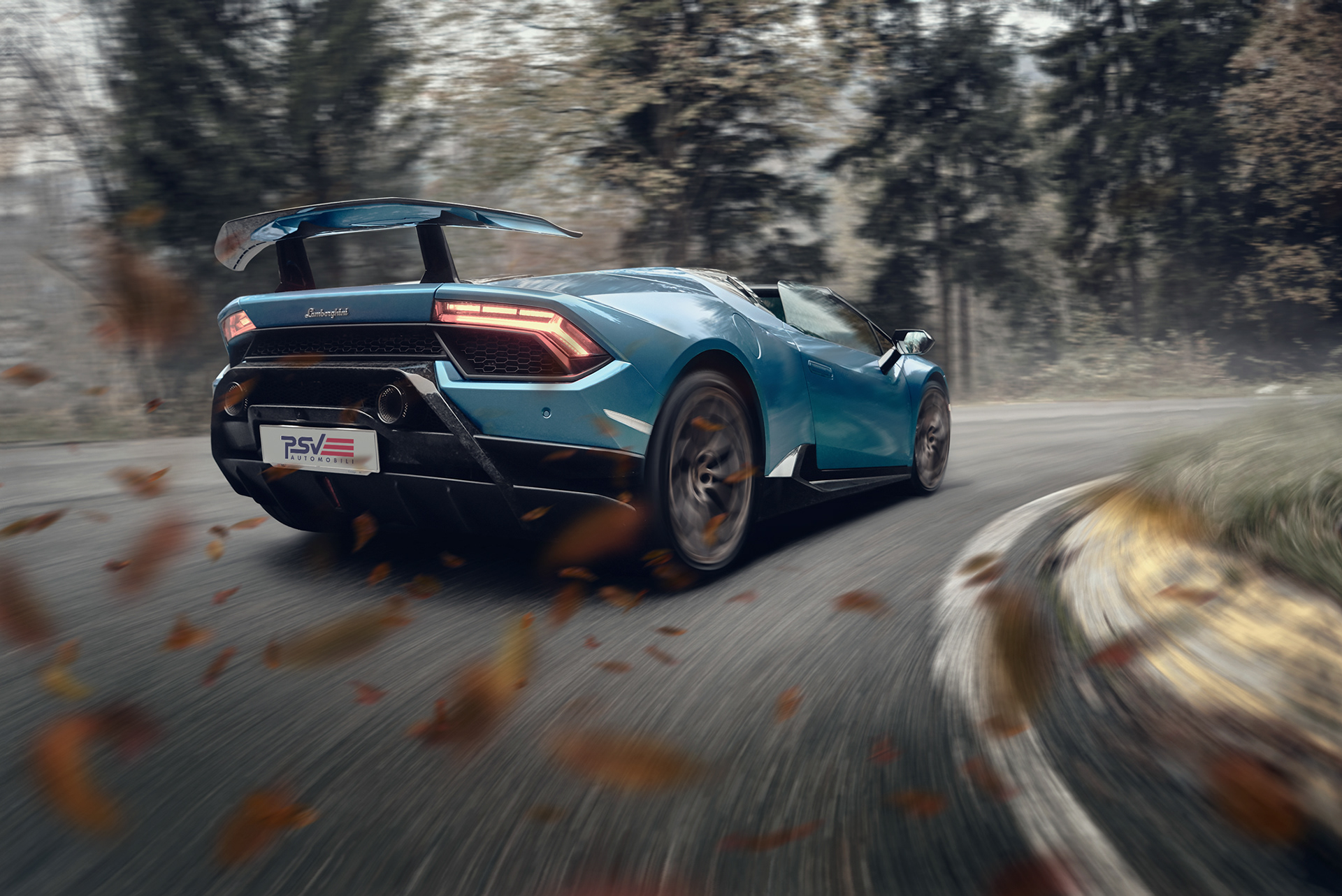PSV Automobili advertising campaign with their brand new Lamborghini Huracan Performante Spyder Ad Personam, driven by the talented racing driver Vicky Piria.